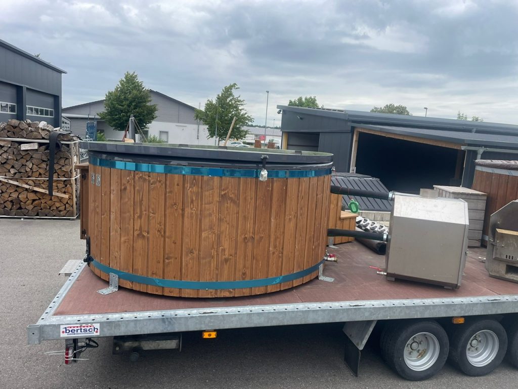 - Außenstehender Ofen inkl. 2m Schornstein mit Hitzeschutz & Regenhaube